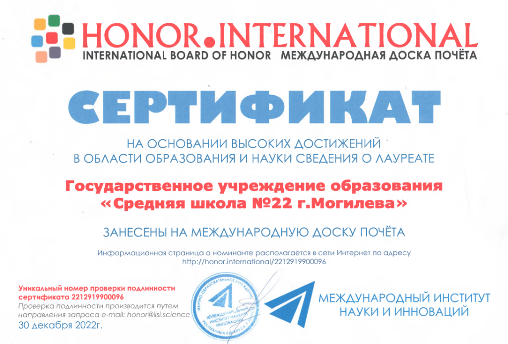 Государственное учреждение образования «Средняя школа №22 г.Могилева» сегодня — это: